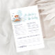 Stap in een wereld van schattige charme met onze "Schattigee Teddy Bear Boy Baby shower Advice And Predictions Kaart", een ontwerp dat de essentie van zoetheid uit de kindertijd en het plezier van het verwelkomen van een nieuw leven vastlegt. In het hart van dit ontwerp staat een winderige waterverf teddybeer centraal, die drie blauwe ballonnen achter zijn rug vasthoudt met een luchtige geheimhouding. Het is een vertederende scène die de vreugde en het wonder belichaamt van het verwelkomen van een kostbare baby jongen in de wereld. Onder de poten van het beer ontvouwt zich een bed van delicate blauwe bloemen als een rustige weide. Elke bloei is een bewijs van de schoonheid van natuur en de zachte, verzorgende liefde die de aanstaande komst van een kostbare babyjongen omringt. Het kleurenpalet is een zachte mix van zachte blues en aardse bruinen, waardoor een sfeer van rust en rust ontstaat. Deze tinten zetten het podium voor een viering gevuld met liefde en de belofte van een nieuw begin. Het belooft een bijeenkomst gevuld met gelach, oprechte gesprekken en de vreugdevolle verwachting van een kostbare kleine. Overeenkomende objecten beschikbaar.