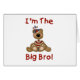 Een bruin beer met een propellerpet en heldere rode tekst die luidt: "Ik ben de Big Bro!" op grote broers Tshirts, canvas tassen, mokken, knoppen, kaarten, sleutelhangers en nog veel meer!
