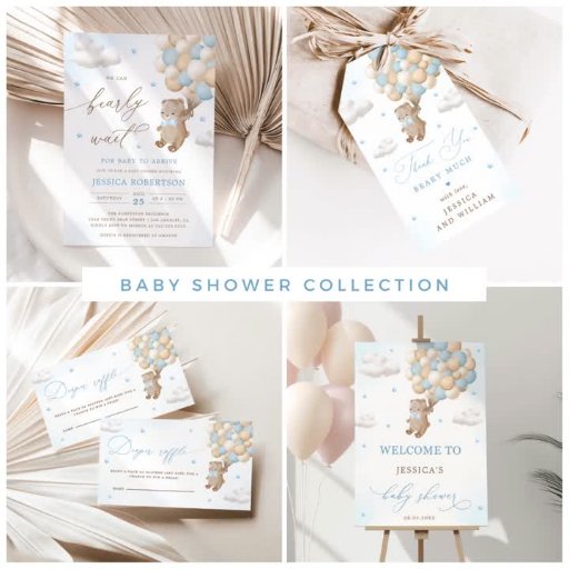Teddy Bear with Blue Balloons Baby ShowerOntworpen door A S