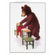 Teddy beer heeft haar strijkplank in evenwicht gebracht op de rug van twee keukenstoelen in deze illustratie uit een kinderboek uit 1907.