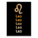 Leo-sterkenteken en naam op zwarte achtergrond.