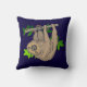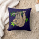 Een schattige tekening van een bruine sloeber die aan een tak vastklemt met bladeren, die ondersteboven hangen.