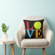 Een gooikussens voor de tennisman van Pop Art LOVE met een gele tennisbal voor de O. De zwarte achtergrond kan worden gewijzigd in de bewerkingskeuzelijst.