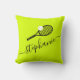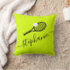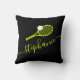 Thennis-themakussens met een tennisracket- en ballonmonogram, voorzien van een elegante scriptnaam op een felgele, groene en zwarte achtergrond die kan worden bewerkt aan elke kleur, perfect voor de tennisspeler, trainer, instructeur, kampadviseur of nieuw teamlid om hun belangrijke reisdocumenten te beschermen tijdens vakantie of toernooi. De rug is omgekeerde kleuren met een zwarte achtergrond.
