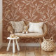 Verbeter uw interieur met het warme en verfijnde "Terracotta Botanical Elegance" behang. Dit ontwerp heeft delicate witte wijnstokbladeren die ingewikkeld zijn geïllustreerd tegen een rijke terracotta achtergrond. De minimalistische lijnkunst gecombineerd met de aardse tinten creëer hebben een serene en stijlvolle ambiance, perfect voor hedendaagse en moderne woningen. Ideaal voor woonkamers, slaapkamers of eetruimtes, dit behang voegt een vleugje natuurlijke schoonheid en elegantie toe, waardoor uw ruimte gezellig en verfijnd aanvoelt.