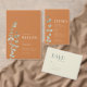 Deze Terracotta Eucalyptus Deco trouwgegevens omhullingskaart biedt een minimalistisch boho- en plattelands-, western- of woestijnthema. De eenvoudige sage groene eucalyptus succulent blad vormt een aanvulling op de herfstachtergrond van terracotta, terwijl het type kunstdeco in combinatie met de botanische groen en verbrande oranje achtergrond een veelzijdigheid biedt om te combineren met andere gekleurde producten uit dit collectie. Deze kleurencombinaties zijn zeker om de gasten te laten zien die worden uitgenodigd om je huwelijksfeest bij te wonen. Voeg meer details aan de rug met om het even welke verdere informatie voor uw gasten toe.