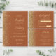 Deze elegante, moderne fan van het huwelijksprogramma heeft een terracotta achtergrond met gouden faux glitter. De tekst wordt weergegeven in elegante goudkleurige handschrift- en koperlettertypen.