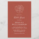 Deze hedendaagse budgetbrudale doucheuitnodiging is voorzien van een minimalistische samenstelling, een eenvoudige florale lijnkunsttekening en een mooie scripttypografie in donkere terracotta. Dit ontwerp is ook beschikbaar op dikker uitnodigingspapier. Bewerk eenvoudig de tekst om deze aan te passen voor uw gebeurtenis. Dit ontwerp