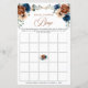 Elegant Navy blue, Terracotta, Oranje oortige bloemige vrijgezellenfeest bingo met een elegant bouquet van Navy blue, Terracotta kleur rozen pinda's en groene eucalyptusbladeren. Neem contact met mij op voor hulp bij aanpassingen of als u een ander product nodig hebt met dit ontwerp.