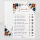Elegant Navy blue, Terracotta, Oranje oortige vrijgezellenfeest met bloemenbloem, gok wie er elegante bouquet van Navy blue, Terracotta kleur rozen pinda's en groene eucalyptusbladeren heeft. Neem contact met mij op voor hulp bij aanpassingen of als u een ander product nodig hebt met dit ontwerp.