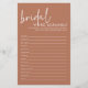 Dit terracotta bruids woord scramble spel is een leuke en slimme manier om gasten te vermaken in een vrijgezellenfeest! Het minimalistische ontwerp is voorzien van een modern script lettertype met een terracotta en wit kleurenschema dat er mooi uitziet op elk vrijgezellenfeest. Het is eenvoudig om te spelen - gasten ontwarren woorden met betrekking tot bruiloften, liefde en huwelijk. Een geweldige activiteit die iedereen laat mengen en lachen!