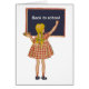 "TERUG NAAR SCHOOL" KLEINE MEISJE MET EEN RODE DROOG EN BRAIDS IN HAAR HAAR HAAR, SCHRIJVEN OP CHALKBOARD