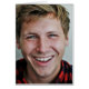 Een joviaal jong man glimlacht van nature voor de camera. Deze kaart is voor de schattige, misschien nerveuze persoon aan de andere kant van de bar.