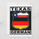 Texas German design, in de stijl van een cool Amerikaans routebord. De tekst die Texas German boven en onder, met de vlag van de staat Texas en de vlag van Duitsland binnen het routebord. Geweldig voor Texanen van Duitse afkomst en voor ex-pats in de Lone Star-staat.
