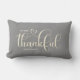 A modern simple lumbar pillow in gray with the words "So Very Thankful", personalize with your family name. This pillow is the perfect addition to your home decorations, or makes a beautiful gift.