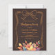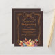 Een blauwe, donkerbruine achtergrond. Versierd met gedempte gekleurde herfstbladeren en een handgetekende boog. Personaliseer en voeg de partijgegevens toe. 1 vel = 1 uitnodiging bedrukt rand tot rand.