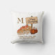 Dit is een moderne HAPPY THANKSGIVING Christelijke monogram gooiend kussen, ontworpen met pompoenen, lamppost en herfstbladeren, plus details. Dit is allen geplaatst tegen een gewone witte achtergrond. Dit zou een geweldige aanvulling zijn op je Thanksgiving thuisdecor. De extra kaarten, de giften en het huisdecor zijn beschikbaar in het Collectie van de THANKSGIVING door Berean Design.