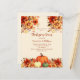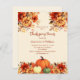 Een zacht beige achtergrond. Versierd met pompoenen en oranje en gele bloemen. Personaliseer en voeg de partijgegevens toe. 1 vel = 1 uitnodiging bedrukt rand tot rand.