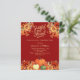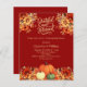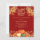 Een terracotta gekleurde achtergrond. Versierd met pompoenen en oranje en gele bloemen. Personaliseer en voeg de feestdetails toe.