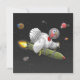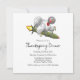 Een leuke en lieve Thanksgiving Dinner Invitation kaart waar de Turkije is ontsnapt uit de Thanksgiving en met behulp van zijn raket door het universum reist.