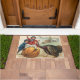 Welkom allemaal bij u thuis met deze door vakantie ontworpen deurmat. Deze door een vakantiehuis ontworpen deurmat heeft een Thanksgiving ontwerp van kinder spelen met een grote pompoen en een kalkoen.