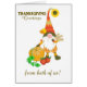Een leuk Thanksgiving wenskaart van ons beiden. Met een schattige gnoom met een lange witte baard en een heel lang, puntig pet, met een zonnebloem en een paar valbladeren die in zijn broedband zijn geknoopt. Volgens de Scandinavische legende leven deze gnomen onder afgelegen boerderijen en zorgen zij ervoor dat de boeren voor hun gewassen en vee zorgen. De gnoom heeft een paar stengels van tarwe in de ene hand en zijn andere hand rust op een pompoen en er zijn enkele roze rode appels naast de pompoen. De voorste cover groet is 'THANKSGIVING Greetings van ons beiden' in zeer donkerbruin om te passen aan de broedband, mittens en schoenen van de gnoom. Het binnenbericht is slechts een suggestie en u kunt het gemakkelijk veranderen of volledig verwijderen als u een "lege binnenkaart" verkiest.
