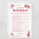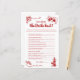 This playful bridal shower game brings instant joy and connection to your celebration, inviting guests to share memories, laugh together, and discover how well they really know the bride. The charming red Italian wine theme adds a warm, romantic touch that feels perfect for bridal showers, bachelorette events, wedding brunches, and rehearsal gatherings. Each question is simple, fun, and designed to spark conversation. This coordinating design pairs beautifully with matching items in the same style, making it easy to create a unified look throughout your bridal suite. Personalize effortlessly and enjoy a keepsake-quality finish that feels special in any setting.