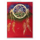 Wenskaart - van het oorspronkelijke schilderij van Harmony, blauw, rode, gouden en groene, gouden veren!