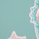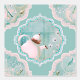 Theepot en tulpen in vers mintgroen met een vleugje lichtroze fantasiepatroon. Het kan ook grappig zijn in de keuken van een heks. Een beetje Alice in Wonderland vibes ook.