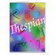 "Thespian" ... je weet wat het betekent ... of wel ? Deze kaart bevat een regenboogkleurige achtergrond met comedy- en tragedie-maskers.
