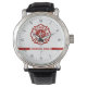 U maakt deel uit van het legioen van brandweerlieden. Laat dit vieren met dit aangepaste horloge dat de naam van de jouwe of de naam van de cadeauontvanger rood maakt langs de doorlopende dunne rode lijn langs het onderste midden van het horloge. Dichter bij het centrum, het klassieke brandweersymbool van het Witte en rode Maltese Kruis. Een modern en stijlvol cadeauartikel voor jezelf of voor de favoriete brandweerman in je leven.
