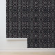 Het artistieke uitgeven, transformeerde deze foto, met zijn bloemige bladeren, en dikzelachtige vormen, dramatisch getoond, in multicolored tinten van, geel, blauw, paars, ecru, en wit, tegen een midderblauw, achtergrond-simulerend, een patroon van het laagwerk.