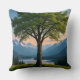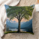 Throw Pillow Tree, Green Land, Sea, Sky & Mountain Kussen