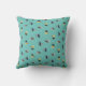 Throw pillow with repeating tropical bird head design on a light teal coloured background, designed by Alan Skyrme.