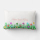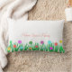 Thuissierbloemen en meerkleurige bloemen op wit Lumbar Sierkussen. De tekst op de voorkant kan worden aangepast. Een geweldig cadeau voor iedereen!