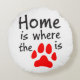 Een woordspeling met het citaat "Huis is waar het hart is", deze ronde gooit kussen heeft de woorden "Huis is waar het [pootdruk afbeelding]" is, met het pootdruk afbeelding in rood, dat het "hart" vertegenwoordigt. Het perfecte cadeau voor dierenliefhebbers.