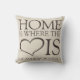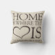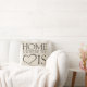 Een zoete familieluid met de uitdrukking "Thuis is waar het hart is" en je aangepaste familienaam geprint in moderne typografie met een hobby uit de toeristen. De letters zijn donkerbruin gedrukt en de achtergrond van het kussen bevindt zich in een licht natuurlijk beige. Een uniek cadeau voor een huishouden of een familieverblijf.