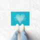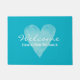 Thuis is waar het hart is. Aqua/turquoise blauwe deur mat voor strandhuis. Maak uw eigen douane grappig model met de achtergrond van de douanekleur. Een liefdessymbool voor waterkleurschilderingen. Voeg uw eigen welkomstbericht, familienaam, monogram, achternaam of grappig citaat toe. Een persoonlijk cadeauidee voor vrienden, nieuw gejuich en familie met een nieuw thuis/huisopwarmingsfeest. Aangepaste kleur achtergrond. Elegant chic script typografie. sjabloon van het doormatbord. Creëer uw eigen mat / tapijt voor de deur aan de voorzijde / de ingang of de hal / trouwplaats , de veranda , de tuin , enz . decor/decoratie voor huis in de openlucht voor uw huis. Verkrijgbaar in kleine en grote afmetingen. Romantische landstijl. Rustische typografie.