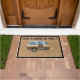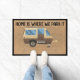 Thuis is waar we het parkeren, kamperen om het dek deurmat
