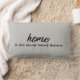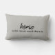 Pillow met citaatlezing: "Thuis is het mooiste woord dat er is". Maakt een geweldig nieuw huis of een huwelijkscadeau. Ontwerp door het bewapeningshuis.