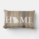 Robuust elegante lumbaalkussens met een lichte houten achtergrond met het woord "HOME" en de "O" als silhouet van de staat Georgië. De achterzijde heeft uw familienaam in witte teksten.