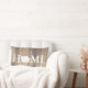 Robuust elegante lumbaalkussens met een lichte houten achtergrond met het woord "HOME" en de "O" als silhouet van de staat Iowa. De achterzijde heeft uw familienaam in witte teksten.