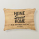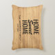 Een gepersonaliseerde gooi kussen die een lichte houten getextureerde achtergrond met het citaat "Huis van het Lusje" kenmerkt. Voeg de achternaam van uw familie toe aan dit product om het een persoonlijke aanraking te geven.