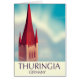 Thüringen Duitsland reist poster van een oude duitse kerk en spire. Exclusieve vakantie print.