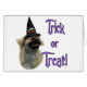 Zal het Trick ors treat zijn deze Halloween? Ons vakantieontwerp heeft uw favoriete hondenras, de Tibetaanse Spaniël, met een heksenpet. Voeg dit jaar een beetje 'Hocus Pocus' toe aan All Hallows' Eve!