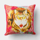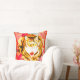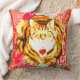 Tijger kattenkussen met rode decoratieve design achtergrond. Zeer kleurrijk met rood wit, sinaasappels met donkerbruine accenten. Schattige en decoratief.