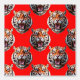 Seamless Repeat Roaring Tiger Head Pattern Design On Red Background