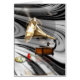 Tijd in Retro - lege kaart. Gramophone met Roos en een klok op een retrozwarte en witte wervelachtergrond. Linkerblanco voor je eigen bericht.