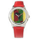 Voeg een etnische aanraking aan je pols toe en vertegenwoordig met dit prachtige horloge versierd met een silhouet van het moederland, ondersteund door de Rasta-kleuren van rood, goud en groen.