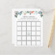 Vrijgezellenfeest bingo-kaart met een waterverf-cascade van groen en roze bloemen met een theepot in de vrije ruimte. Een leuke manier om te communiceren met douchegasten terwijl de bruid-om-te-zijn haar cadeautjes opent bij haar trouwdouche.